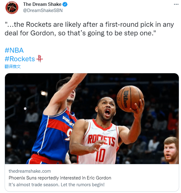 曝太阳想引援戈登!预计火箭要价首轮签,多支季后赛球队都想要他
