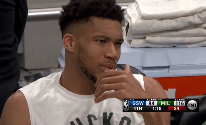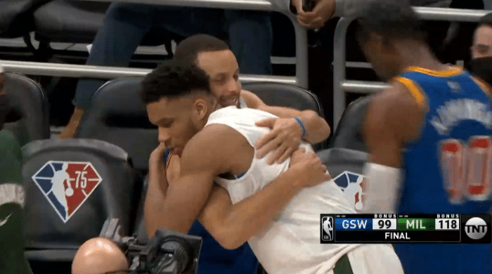 汤普森提前离场!赛后字母哥主动拥抱库里,勇士领袖强颜欢笑