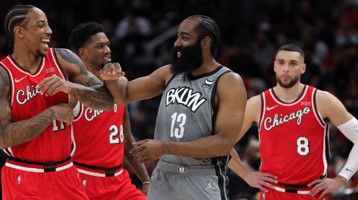 来源:JRS直播网01-13 21:15JRS直播网01月13日讯 今天NBA常规赛结束了一场焦点战,东部第一的公牛对阵第二的篮网,最终篮网客场138-112大胜公牛,复仇成功。这场比赛篮网第三节在杜兰特的带领下扩大优势,末节哈登率队一波流提前收割比赛的胜利,比赛提前失去胜负悬念,篮网迎来了一场大胜,也复仇了此前双杀自己的公牛。此役公牛的扣篮王琼斯开场36秒伤退,篮网三巨头表现出色,他们合砍61分13篮板28次助攻,其中哈登砍下25分7篮板16助攻,拉文和德罗赞遗憾空砍41分。