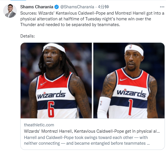 此前火箭队更衣室也曾发生内讧,小波特和火箭助教争吵并且扔了东西,之后直接离开球馆,伍德则是拒绝出战下半场,目前他们的内讧问题已经解决,现在奇才更衣室也发生不和谐事件。