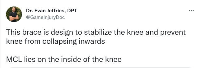 医学专家Evan表示,浓眉佩戴的左膝支架,主要是为了保持膝盖稳定,避免膝盖内塌,因为浓眉受伤的韧带就在膝盖内侧。此前Evan就曾表示,浓眉的伤势可能要6周才能复出。