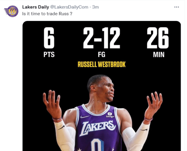 浓眉缺阵后,湖人尝试过多种打法,最终确定让詹姆斯打中锋,大部分时间放弃使用霍华德和小乔丹。不过,面对过去23场比赛进攻篮板和总篮板都排在联盟第一的灰熊,湖人的内线劣势就暴露无遗了。目前,湖人的赛季正好打到一半,21胜20负,暂列西部第七。据名记查拉尼亚报道,湖人已经参与格兰特和特纳的竞争,有可能在交易截止日前有所行动。美媒也晒出威少上一场的糟糕数据(上场26分钟,只得到6分,投篮12中2),提出问题:“是时候送走拉斯(威少)了?”