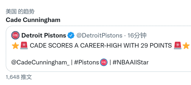 全场比赛,坎宁安出战38分钟,17中10三分9中5罚球4中4砍下29分8助攻2断2帽的全面数据,其中得分创造个人生涯新高。毫无疑问,坎宁安在第三节的爆发是活塞完成反超并最终获胜的关键,他的名字也第一时间冲上了热搜,恭喜坎宁安打出生涯之夜的表现。