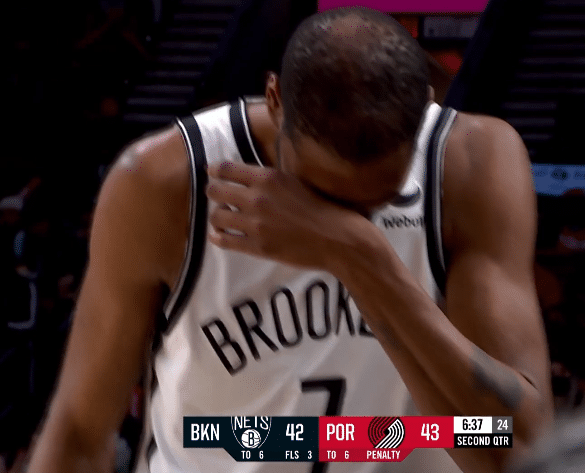 下半场,杜兰特第三节4投2中仅贡献4分,欧文单节也是贡献4分,篮网双巨没有疯狂得分,开拓者投疯了,外线下起三分雨,单节32-19夺回领先;篮网全队单节19分,这进攻确实太糟糕。