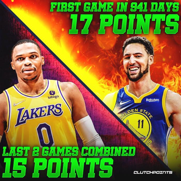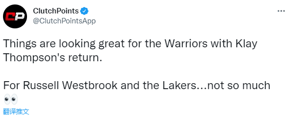 来源:JRS直播网01-11 09:48JRS直播网01月11日讯 ,美媒CLutchPoints对比汤普森和威少的数据——汤普森时隔941天重返赛场,首秀17分;过去两场比赛,威少总共拿到15分;美媒晒对比图并且发推写道:随着汤普森的回归,勇士的情况变得更好,对于威少和湖人来说,他们的情况很不好。