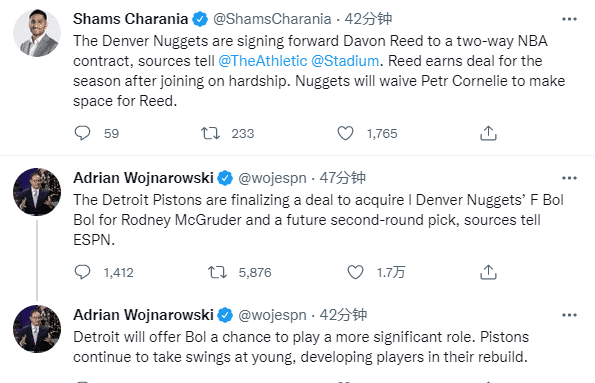 NBA又一笔交易达成!掘金送走波尔1换2,裁人并双向合同签约里德
