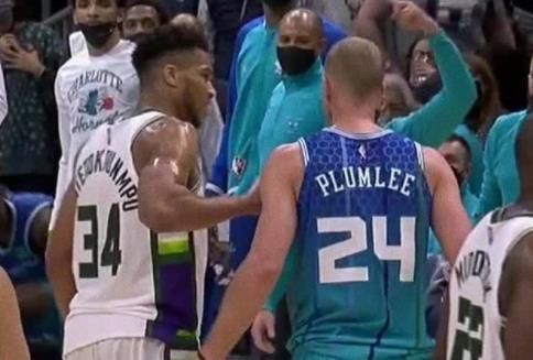 末节,米德尔顿中投打铁不中,字母哥抢到进攻篮板并且把球打进,不过抢篮板时,字母哥有一个背后推人的小动作,抢到篮板下落时,字母哥的手肘打到普拉姆利的脑袋,后者的脑袋被打出血;随后字母哥主送上前问候普拉姆利的伤势。