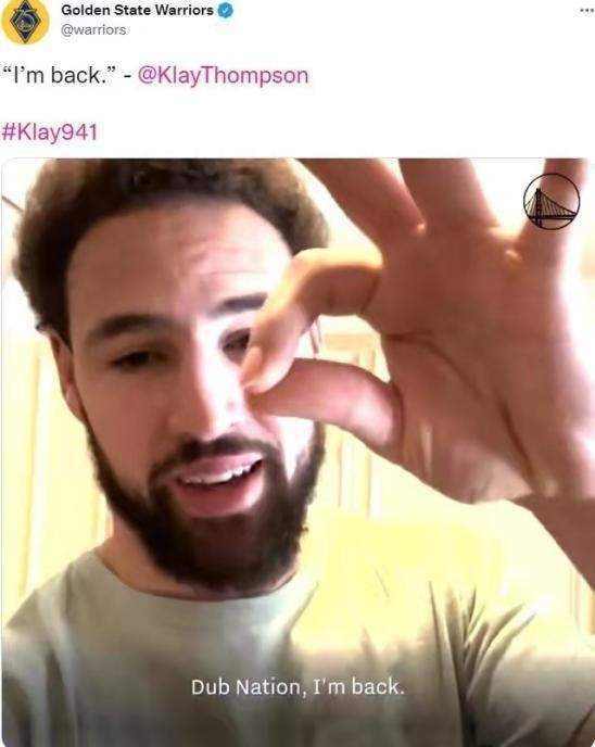 汤普森官宣复出,941天的等待!库里更推欢迎,科尔透露不会让打替补