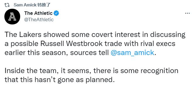 来源:JRS直播网01-06 16:21JRS直播网01月06日讯 ,来自NBA名记Sam Amick的报道,湖人在赛季早些时候,已经流露出想要交易威少的“秘密兴趣”。在湖人内部有人已经形成了一种共识,那就是威少的作用不如预期,其中就包括了詹姆斯和浓眉。看起来,湖人在内心已经承认了交易失败。