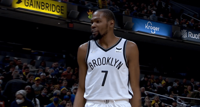 末节,欧文坐在替补席和队友有说有笑,聊得很开心;第四节8分39秒欧文上场,尝试三分却三不沾,之后米尔斯投进三分反超比分;关键时刻,欧文连续两次中投打停步行者,杜兰特中投,欧文反击拉杆上篮,再次打停对手。