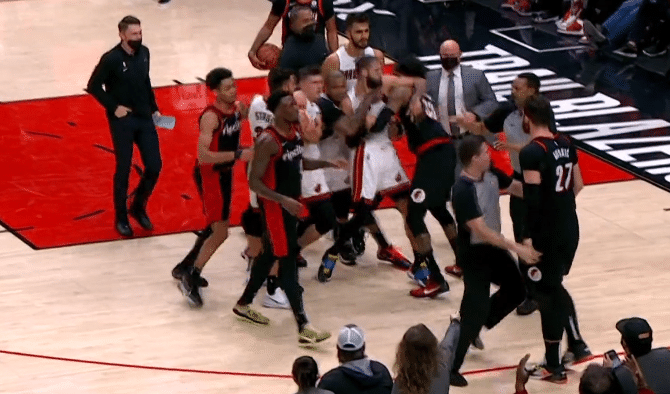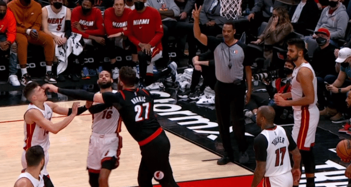 火爆冲突!希罗被撞倒怒推努尔基奇,被打一巴掌后两人都被驱逐离场