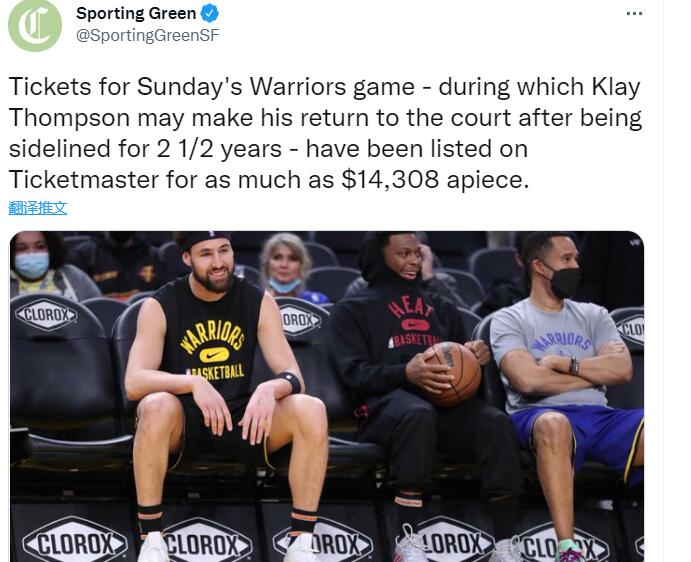 来源:JRS直播网01-05 15:25JRS直播网01月05日讯 ,来自美国票务网站Ticketmaster的数据显示,当地时间周日勇士与骑士的比赛,也就是汤普森计划中的复出之战,比赛最贵的票价已经被炒到了14308美元,直逼库里破三分纪录时麦迪逊广场花园的最贵票价14700美元。毫无疑问,汤普森这场复出之战,将点燃大通中心最狂热的一面。