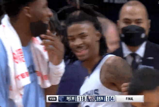 莫兰特的表现完胜杜兰特和哈登两大巨头,更是打得篮网主场的球迷集体倒戈,为莫兰特高呼MVP;莫兰特滑翔劈扣让杜兰特沦为背景板,阿杜目送莫兰特战斧暴扣。