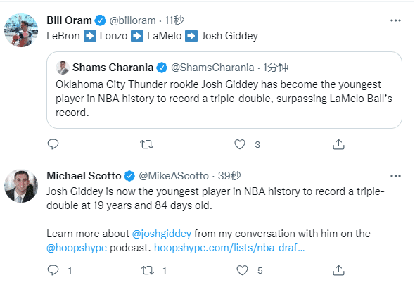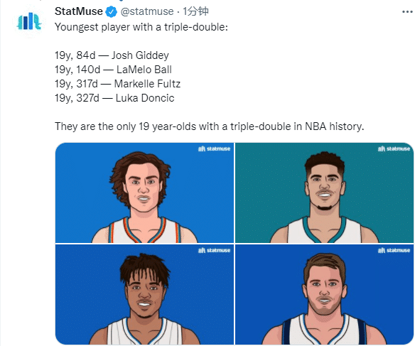 目前詹姆斯已经成为历史最六年轻三双先生,后辈们一次又一次刷新历史最年轻三双纪录;上一场吉迪拿到0分10篮板10助攻的奇葩数据,创造NBA历史近50年新纪录,如今他再次创造历史。