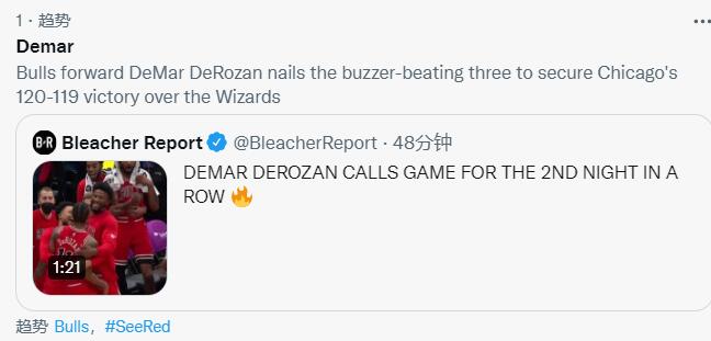 来源:JRS直播网01-02 15:05JRS直播网01月02日讯 NBA常规赛,公牛120-119逆转击败奇才!德罗赞此役再度完成了高难度的压哨三分绝杀,连续两个夜晚绝杀, 德罗赞成为历史首人。赛后,德罗赞的名字登上全美热搜第一位!包括詹姆斯在内的球员,媒体和球迷,纷纷盛赞德罗赞。不知道看到这一幕,湖人作何感想?