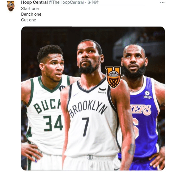 来源:JRS直播网01-01 16:50JRS直播网01月01日讯 组建起一支拥有豪华明星阵容的队伍,可能是每一位球队老板和球迷都希望看到的事情。不过受制于薪资空间和联盟限令的影响,这样的情况几乎不可能会实现,这样的阵容也只能是在全明星赛拥有一天时间的限定体验。不过尽管没有办法在现实中实现,但是这完全不能阻挡人们对于美好事情的幻想。这不,在2022年的第一天,美国媒体便HoopCentral便在推特上发出一个讨论话题,这家媒体在推特中写道:“首发一个,替补一个,裁掉一个。”配图则是将字母哥、詹姆斯和杜兰特P在一起,不得不说美媒的脑回路真是非常清奇,这样的问题抛出来自然会迎来无数球迷的跟帖讨论,那么下面不妨让我们也一起来大胆假设一下,到底该如何进行选择吧!