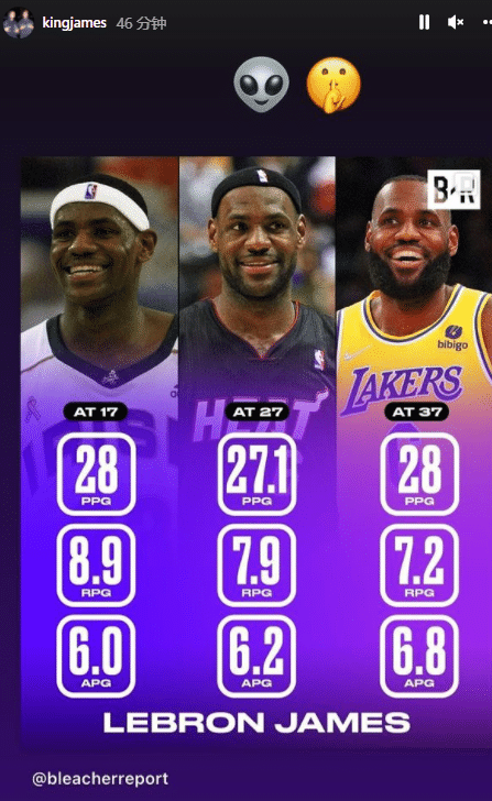 追平名宿又创纪录!美媒晒詹姆斯统治级神数据,老詹回应外星人表情