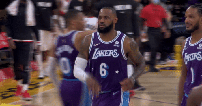 詹姆斯职业生涯第一次半场砍下至少25分10板,也成为近25个赛季以来第三位半场至少25分10板的湖人球员,前两位分别是奥尼尔和拜纳姆;詹姆斯半场25分老詹近3年半场得分新高。