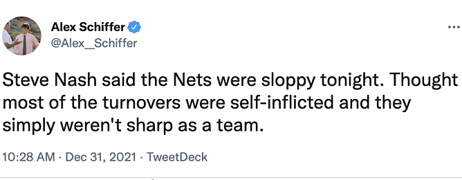 这场比赛结束之后,主帅纳什接受采访,他表示:“球队今晚有些懈怠,很多失误都是自己造成的,而且球队今晚作为一个整体显得不够锋利。我认为我们的球员知道这不是我们的最佳表现,我们因此会在下一场比赛中更具饥饿感。”