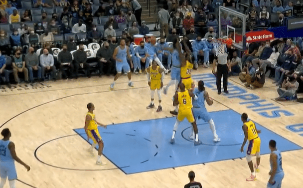 除了霍华德之外,莫兰特还在此前对阵湖人的比赛中尝试隔扣浓眉哥,2020年3月的比赛,灰熊对阵湖人,当时莫兰特摆脱湖人球员的防守,他直杀内线尝试隔扣浓眉,结果扣飞后重摔倒地,被裁判吹罚进攻犯规。虽然没有成功,但他的动作也引发了很大的关注度。