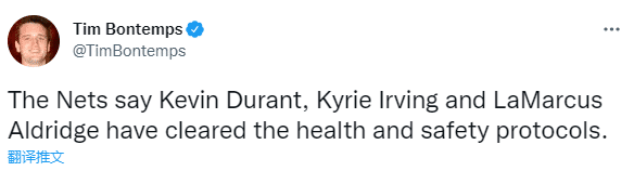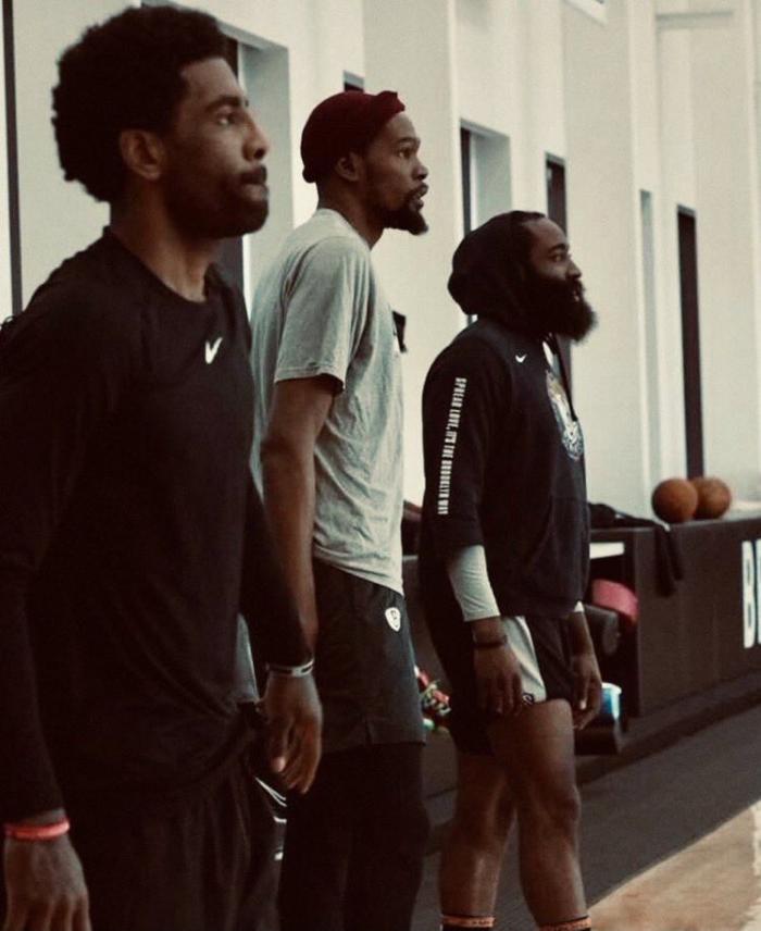 换句话说,篮网三巨头将在明天一起训练,杜兰特、哈登和欧文终于又在一起打球了。