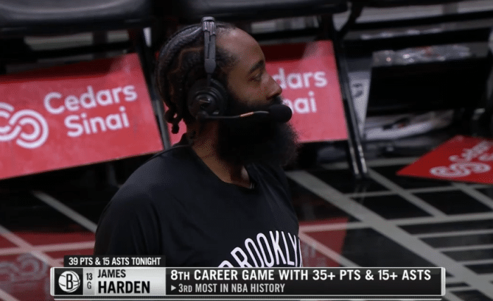 来源:JRS直播网12-28 15:25JRS直播网12月28日讯 ,篮网客场124-108大胜快船,杜兰特和欧文仍未解除隔离,32岁哈登单核带队,全场出战40分钟25投15中轰下39分15助攻8篮板2抢断,末节关键3+1杀死比赛;哈登连续两场大爆发,先后击败湖人和快船洛城双雄,哈登一战狂刷多项历史纪录。