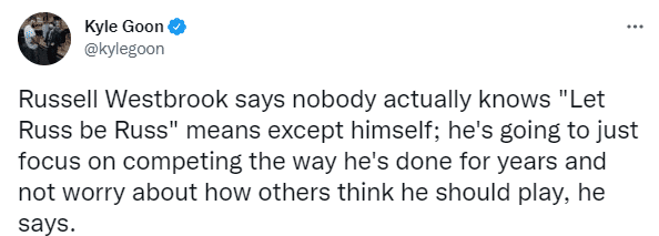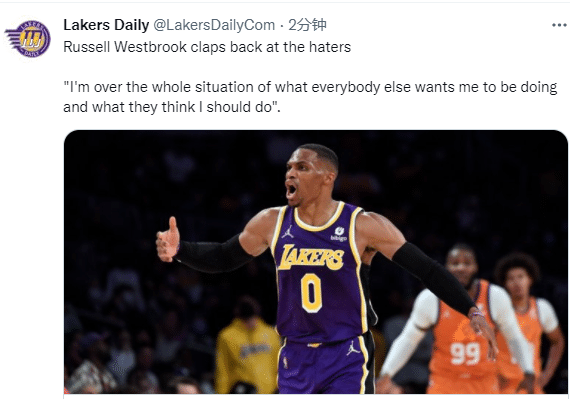 对于外界的质疑声,威少本人回应:我已经厌倦并且受够了听到别人说我该做什么以及我应该做什么;威少还表示没人比他更清楚“让威少成为威少”的意思:未来我将只专注于继续以自己多年来的风格继续努力,不会在意别人认为自己该怎么打球的言论和看法。