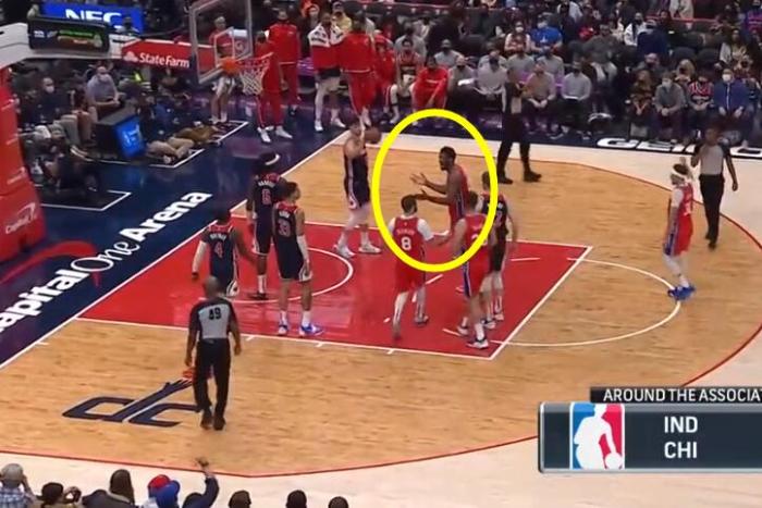 第三节还剩3分多钟时,恩比德在腰位拿球后,利用身体撞倒哈雷尔,裁判没有响哨。随后,恩比德持球突入内线,哈雷尔则来了一个凶狠犯规。两人迅速扭打在一起,不过双方球员也很快将两人分开。两人各自吃到一次技术犯规,算是暂时平息了怒火。