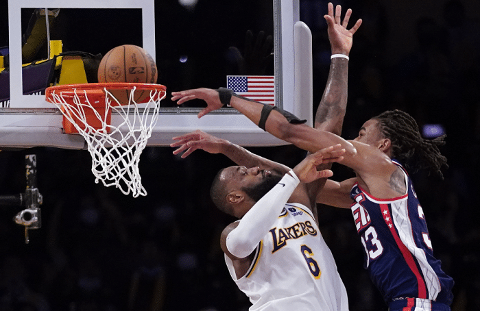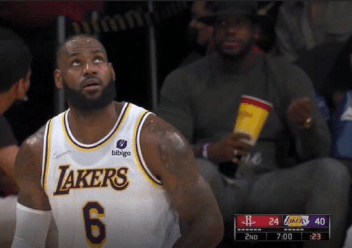 本场比赛,湖人最多一度落后23分,三节打完还落后20分,很大的原因是詹姆斯下场休息了;末节詹姆斯带队疯狂反扑,终场前48秒追平比分,可是威少扣篮惨遭篮筐大帽,老詹沦为背景板,哈登四罚全中;输球后,詹姆斯十分沮丧,第一时间扭头离场。