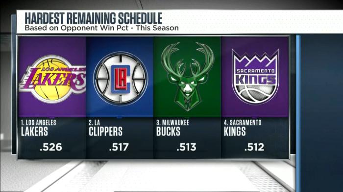 1、湖人 剩余对手平均胜率52.6%