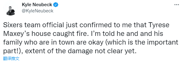 突发!曝76人新星家中房子着火,惨遭意外所幸他和家人都没事