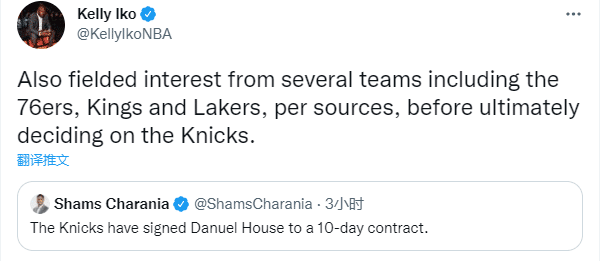 纽约尼克斯已经正式宣布签下豪斯,晒照并且发推写道:欢迎豪斯来到纽约;豪斯本人则发推回应:我已经来到麦迪逊花园球馆了。