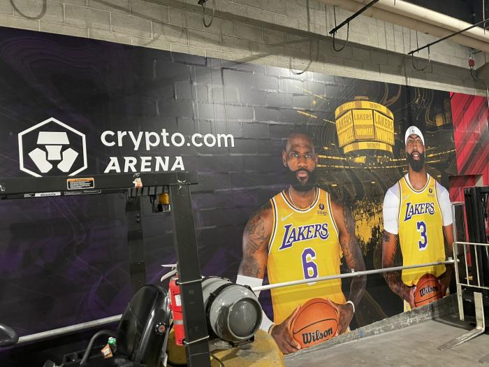 来源:JRS直播网12-24 19:43JRS直播网12月24日讯 ,湖人主场对阵马刺,这是湖人在斯台普斯中心的最后一场比赛;目前湖人主场已经换上新的标志,正式更名为Crypto.com球馆,全新的元素已经上线,湖人主场已经贴上新的巨幅海报,詹姆斯和浓眉两大巨星出镜。