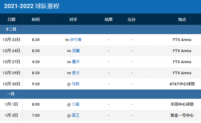 热火战绩上近期表现不错之外,主帅斯波也迎来了利好消息,那就是接下来他们将会遇到甜蜜赛程。翻看下热火接下来的对手,整体的实力都不算很强,其中包括了:活塞、魔术、奇才、马刺、火箭和国王。期间热火还不用出战NBA常规赛年终大战,可以多获得几天休息的时间。