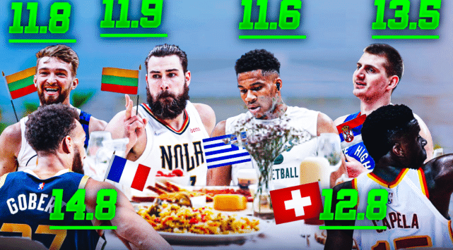 戈贝尔(法国)以场均14.8篮板高居全联盟第一,新科MVP约基奇(塞尔维亚)场均13.5个排在第二,卡佩拉12.8(瑞士)位居第三,瓦兰丘纳斯(立陶宛)11.9个第四,小萨博尼斯(立陶宛)11.8个第五,字母哥(希腊)则是以11.6个排在第六,前六清一色全是欧洲球员。