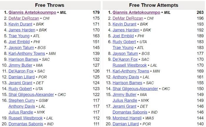 本赛季,德罗赞在罚球线上的表现极为出色。算上这4个罚球,德罗赞本赛季的罚球是200罚179中,命中率接近90%。而179个罚球命中,也让德罗赞追平了字母哥的179中,并列联盟第一,超过了杜兰特和哈登。虽然在罚球数上,德罗赞和字母哥的263有差距,但不同的是,德罗赞有命中率的保障。