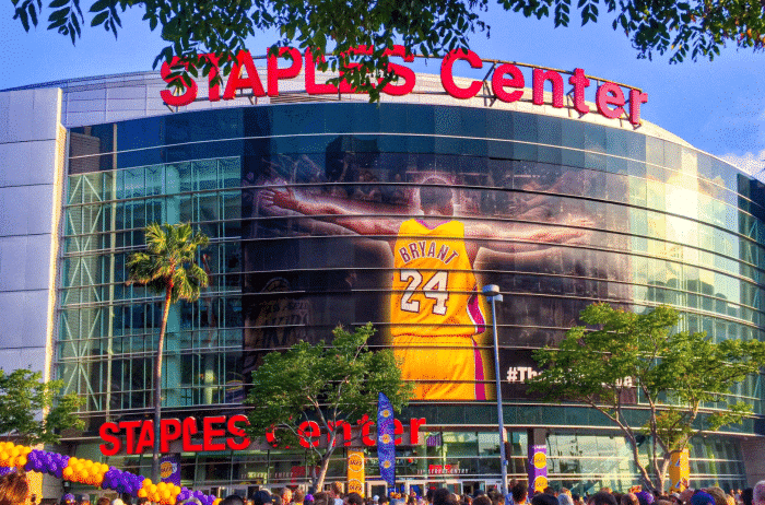 湖人主场正式更名,再见了斯台普斯!新标志已被安装在球馆大门口