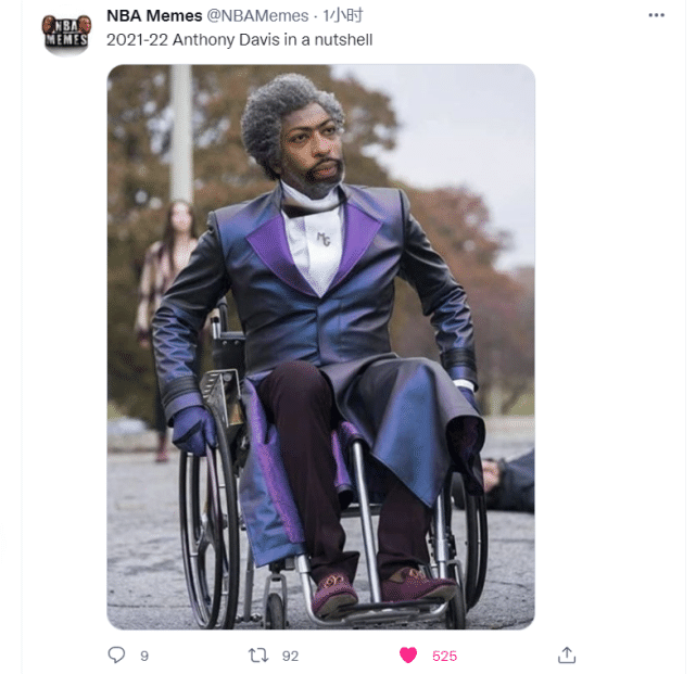 虽然这些调侃对于浓眉哥来说很扎心,但确实又是事实,从2012年登陆NBA到现在,戴维斯虽然没有遭遇过毁灭性的大伤,但小伤却是源源不断,湖人上赛季季后赛首轮游,也主要是因为浓眉哥腹股沟受伤。