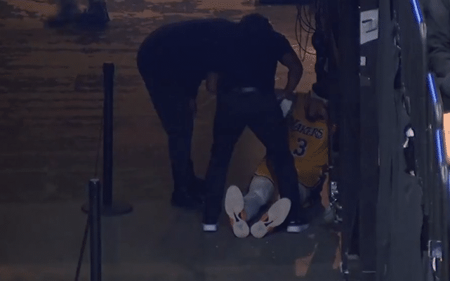首节比赛,浓眉哥突破传球后失衡摔倒,右脚踩到对手出现崴脚情况,随后一直捂着自己的右脚踝,并且回到了更衣室。但是在第二节后半段,戴维斯回到了场上,看上去崴脚情况并不严重。