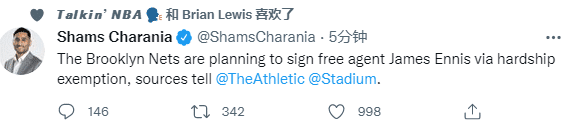 篮网连签两人!先后引援恩尼斯和哈里森,7人隔离无奈使用困难特例