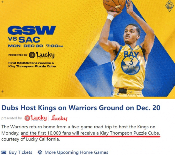 来源:JRS直播网12-17 10:45JRS直播网12月17日讯 今天勇士方面迎来重大利好,那就是克莱已经无限接近复出,根据此前媒体的报道显示,克莱很可能会在12月21日对阵国王的比赛中迎来复出,如今勇士官方宣布在12月21日主场迎战国王的比赛,前1万位进入球馆的球迷,将收到以克莱-汤普森为主题设计的拼图方块。这也就意味着,这场比赛克莱是很有可能迎来复出的。