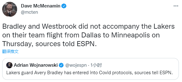 到目前为止,湖人队已经有五名球员触发协议被隔离,他们五人都已不在队中,其中威少和布拉德利没有随队从达拉斯飞往明尼苏达;湖人队疫情恶化,此前队内还有一些工作人员中招,湖人助教菲尔-汉迪也已被隔离。