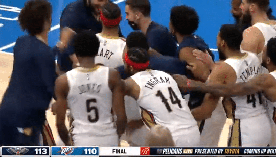 最终鹈鹕113-110绝杀雷霆,英格拉姆轰下34分8篮板4助攻,格拉汉姆拿到15分8照顾4助攻,超远神仙绝杀太疯狂,比湖人绝杀还牛逼。