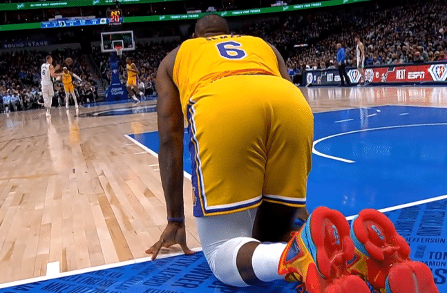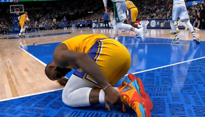 从慢镜头可以看出,詹姆斯突破上篮时踩到了波尔津吉斯的脚,导致崴脚痛苦倒地,十分痛苦;不过老詹伤势无大碍,拒绝下场继续打,不愧为联盟公认的铁人,钢铁之躯太罕见。