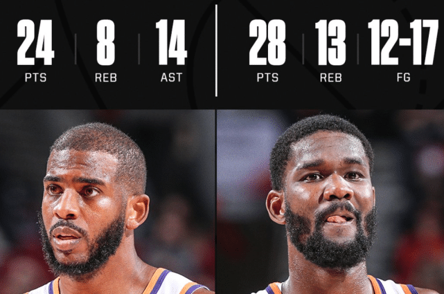 在第四节最后时刻,太阳落后,保罗连续两次命中高难度的中距离扳平比分,成功把比赛拖入加时赛。加时赛,开拓者先拿2分,CP3再次硬拔中距离还有,随后卡梅隆约翰逊投进反超三分,佩恩两罚全中杀死比赛。全场比赛,保罗出战41分钟,19中10高效砍下24分8板14助攻3抢断的全面数据,艾顿也是17中12砍下了28分13板,得分创个人赛季新高。据ESPN统计,保罗今天有9个助攻送给了艾顿,这是他自2014年12月以来首次单场给同一个队友送出至少9次助攻,上一次是给格里芬。
