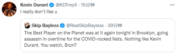 杜兰特直接用大号回应著名詹黑:我真的不喜欢你。