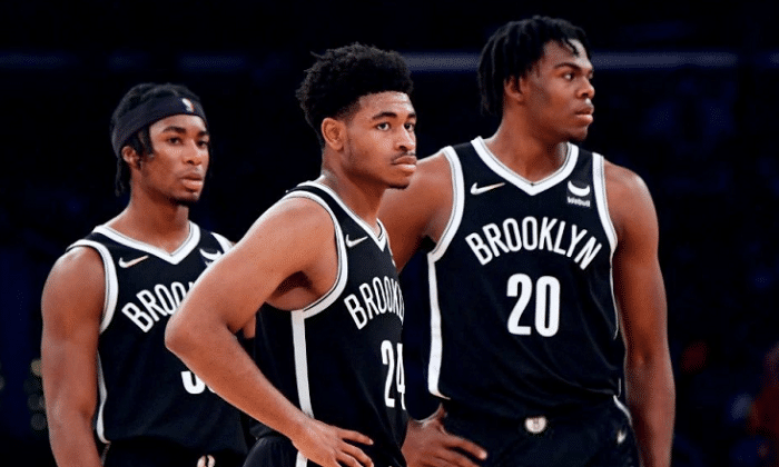 这场比赛哈登、阿德和本布里等人都因为触发健康协议被停赛,篮网只剩下8人出战,其中不乏00后小将爱德华兹等人。