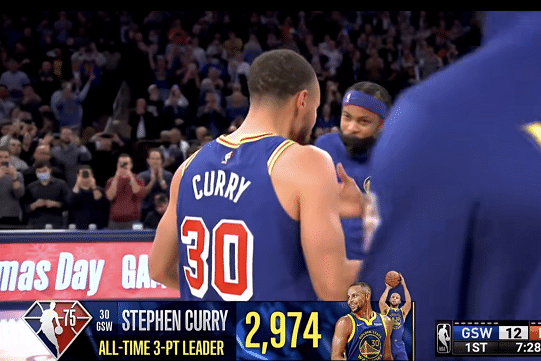来源:JRS直播网12-15 10:54JRS直播网12月15日讯 今天NBA常规赛开始了一场焦点战,勇士客场挑战尼克斯,这场比赛所有的焦点都放在库里的身上,他还差2个三分球就可以打破雷阿伦保持的三分球纪录。最终库里在首节还剩下7分28秒的时候投中了他在本场比赛的第二个三分球,个人职业生涯的第2974记三分球,超越阿伦的2973记,成为全新的历史三分王。