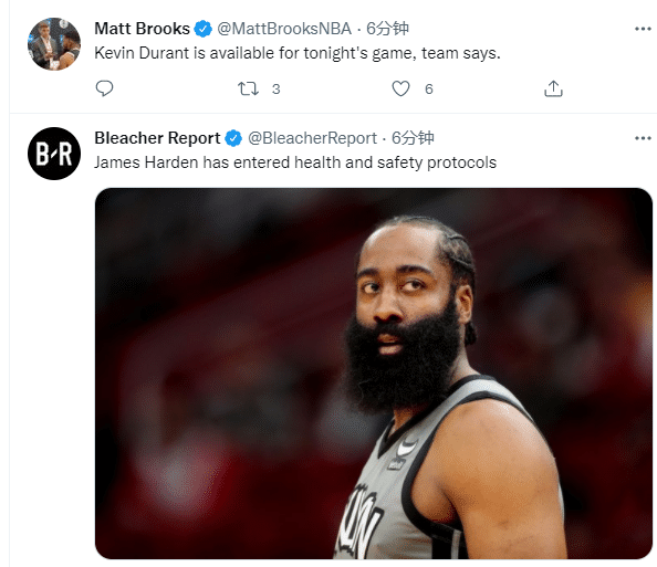篮网全队7人隔离太惨,哈登触发健康安全协议!杜兰特带伤出战