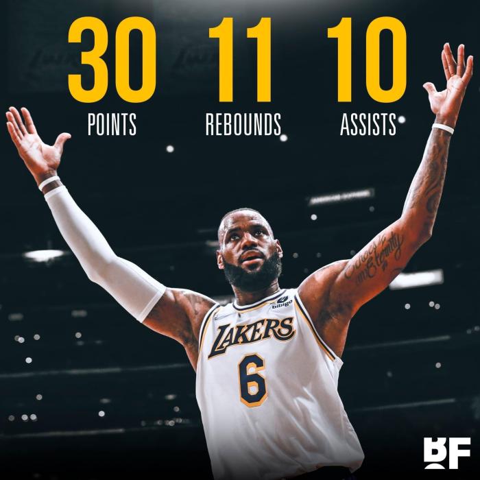 36岁347天,詹姆斯超越科比成为历史上最老30+三双先生。